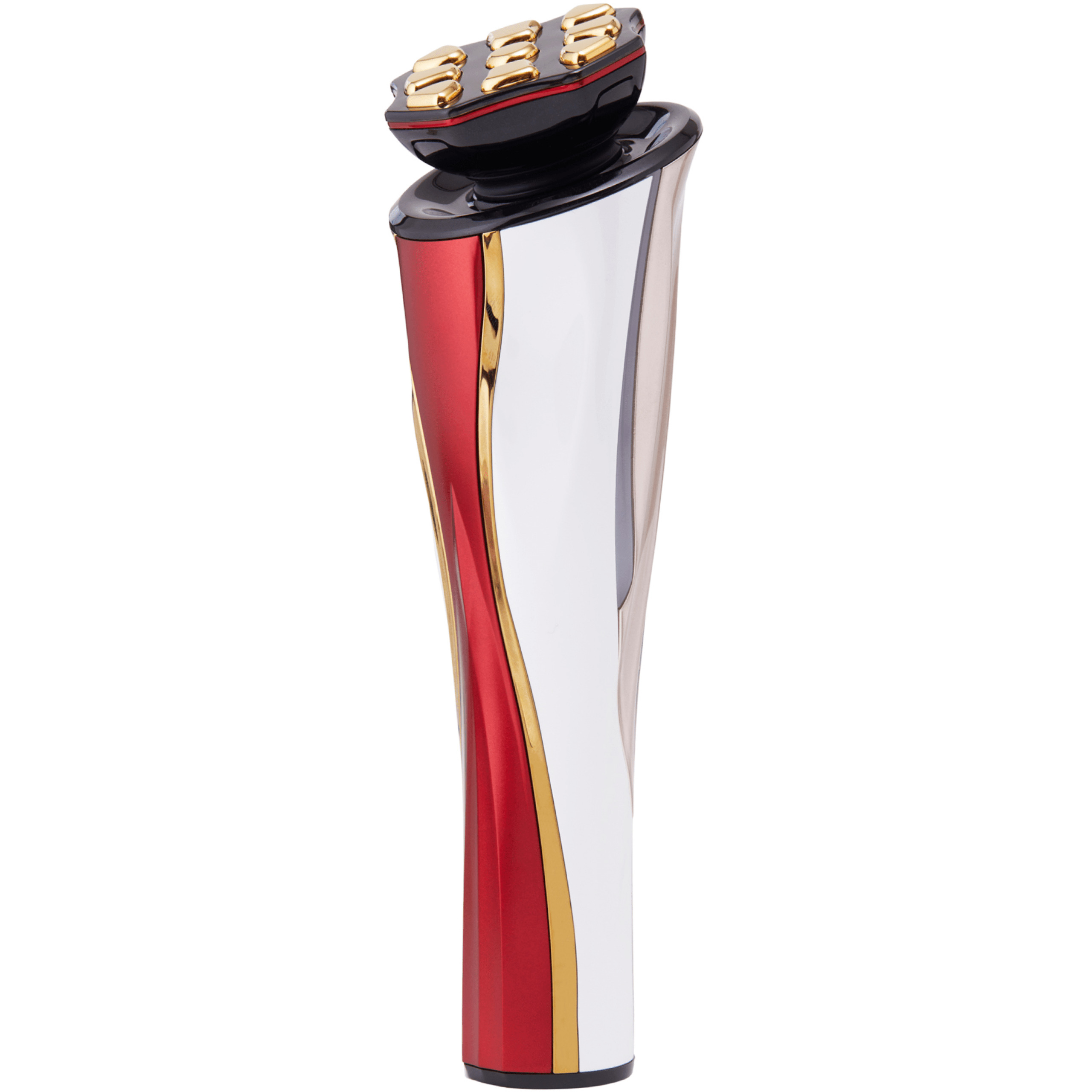 Преимущество данной модели заключается в увеличенной до 17В мощности, 9-ти, покрытых 24К золотом, рабочих пластинах, которые дают сложную геометрию проработки мышц, выделенном в отдельную кнопку режиме RF-лифтинга для активной работы с плотностью кожи, а также плавающей головке для удобной проработки как больших так и малых участков с одинаковой эффективнотью.